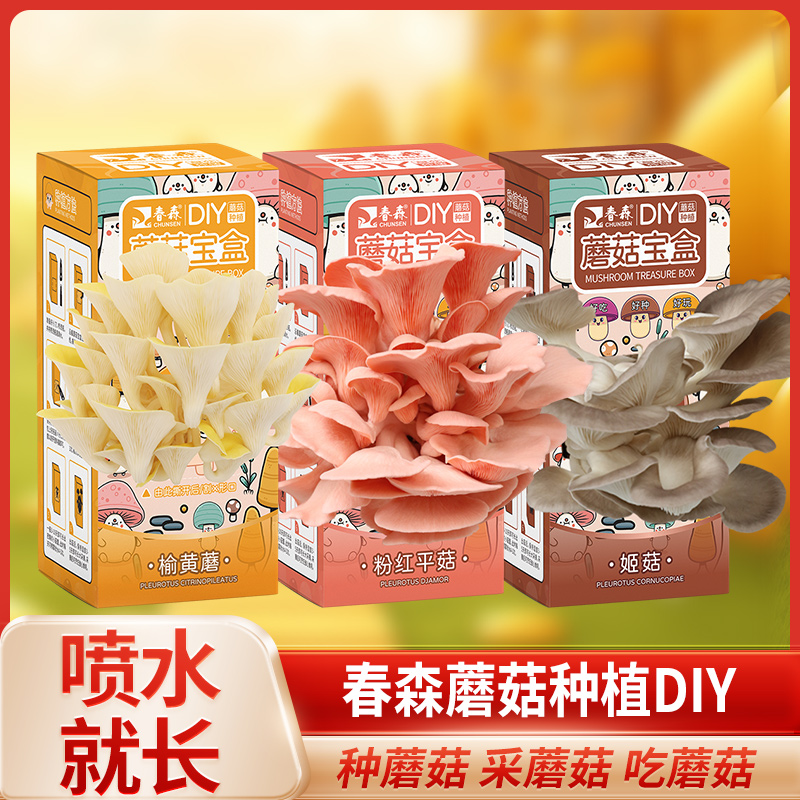 春森蘑菇寶盒是由陜西春森菌業(yè)有限公司生產(chǎn)的一種輕簡(jiǎn)性食用菌種植產(chǎn)品,產(chǎn)品包括灰平菇、白平菇、秀珍菇、姬菇、粉紅平菇、榆黃蘑。噴水就長(zhǎng)蘑菇,好種、好玩、好吃,具有趣味性、科普性、教育性、實(shí)用性,可以在家里、學(xué)校、辦公室體驗(yàn)到種蘑菇、采蘑菇、吃蘑菇的樂(lè)趣!